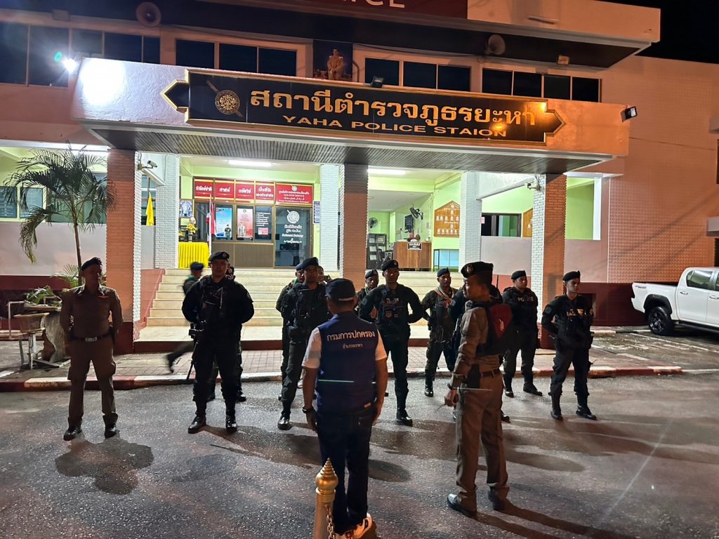 ว่าที่ พ.ต.อ.ฉัตรชัย ศักดิ์ดี ผกก.สภ.ยะหา พ.ต.ท.โกเศรธฐ์ สาอุ รอง.ผกก.ป.สภ.ยะหา พ.ต.ท.สุนทร อัมโร สวป.สภ.ยะหา ร.ต.ท.ก้อเส็ม เหตุหาก ปฎิบัติหน้าที่ (ร้อยเวร 2-0 ) พร้อม ชป.อัสนีย์ เเละ ฝ่ายปกครอง ร่วมปล่อยแถว เพื่อป้องกันเหตุความไม่สงบในพื้นที่ จากฝ่ายตรงข้ามและลดจำนวนวัยรุ่นก่อนกวนความไม่สงบแก่ประชาชนในพื้นที่