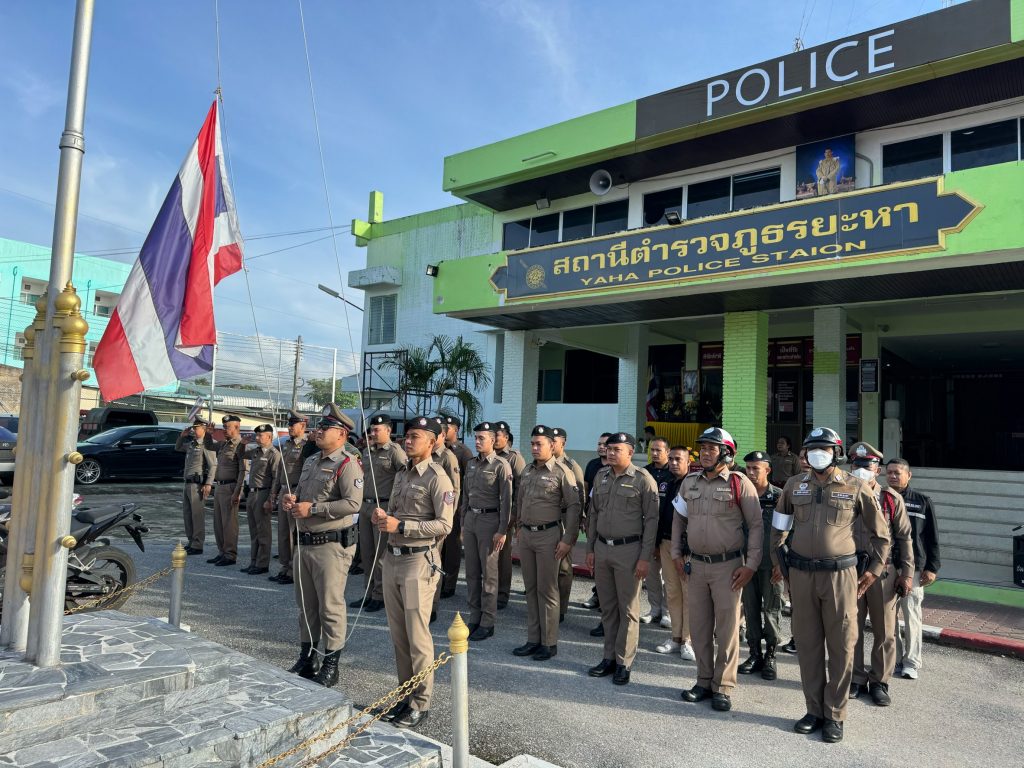 ว่าที่ พ.ต.อ.ฉัตรชัย ศักดิ์ดี ผกก.สภ.ยะหา นำข้าราชการตำรวจ สภ.ยะหา ทุกระดับชั้น ร่วมลงแถวเคารพธงชาติ กล่าวคำศัพท์ปฏิญาณ พร้อมได้ร่วมแสดงความยินดีกับข้าราชการตำรวจที่ได้รับการแต่งตั้งตำแหน่งสูงขึ้น และตอนรับข้าราชการตำรวจที่มาดำรงตำแหน่งใหม่ ณ สภ.ยะหา อ.ยะหา จว.ยะลา
