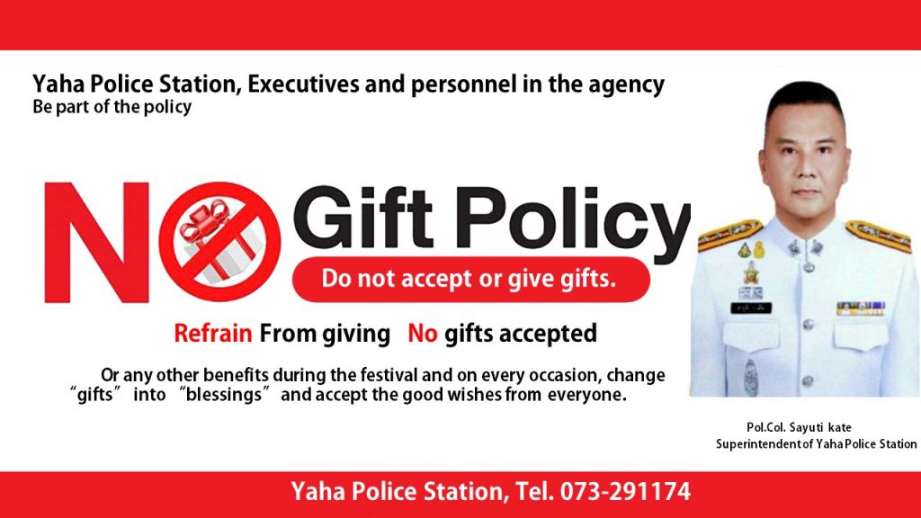แสดงภาพป้าย (No Gift Policy) ณ จุดบริการและจุดประชาสัมพันธ์